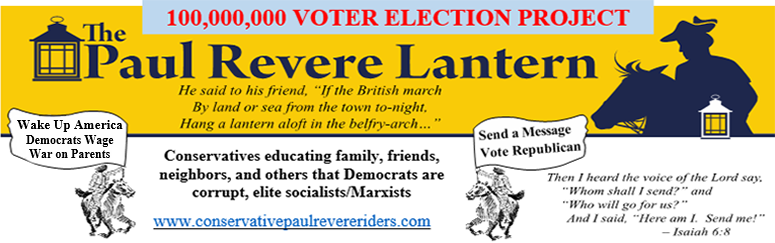 I support your unique project of getting millions of grassroot conservatives to be modern-day Paul Reveres bypassing Big Woke Corporate Media to teach and educate 100,000,000 voters before election day that Democrat politicians and the Democrat Party are corrupt, elite socialists/Marxists who are waging a war on PARENTAL RIGHTS.